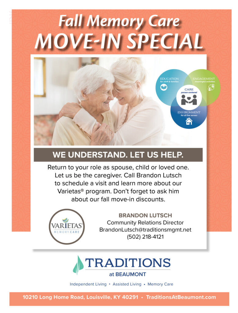 Return to your role as spouse, child or loved one. Let us be the caregiver. Call Brandon Lutsch at 502-218-4121 to schedule a visit and learn more about our Varietas® program. Don't forget to ask him
