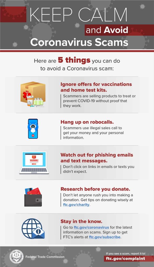 For a fast and easy visual, the Federal Trade Commission (FTC) just released this chart. You can visit FTC.gov for more handy reminders and new information as it becomes available.